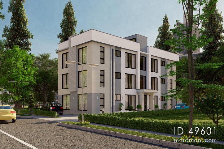 Small apartment blocks are becoming increasingly popular in urban areas for city dwellers who are price-conscious. If you are planning to go into real estate this is the gateway to get there. A two-bedroom apartment block with 6 apartments in 3 stories. Each unit is ideally sized at 80 square meters and contains a kitchen, laundry with balcony, living room, two bedrooms with built-in closets, and a shared bathroom. The staircase leads all the way to the rooftop terrace with space for water tank storage as well. The block has a minimal footprint measuring only 20 x 8 meters. We also have a studio apartment version of this design that you can view HERE