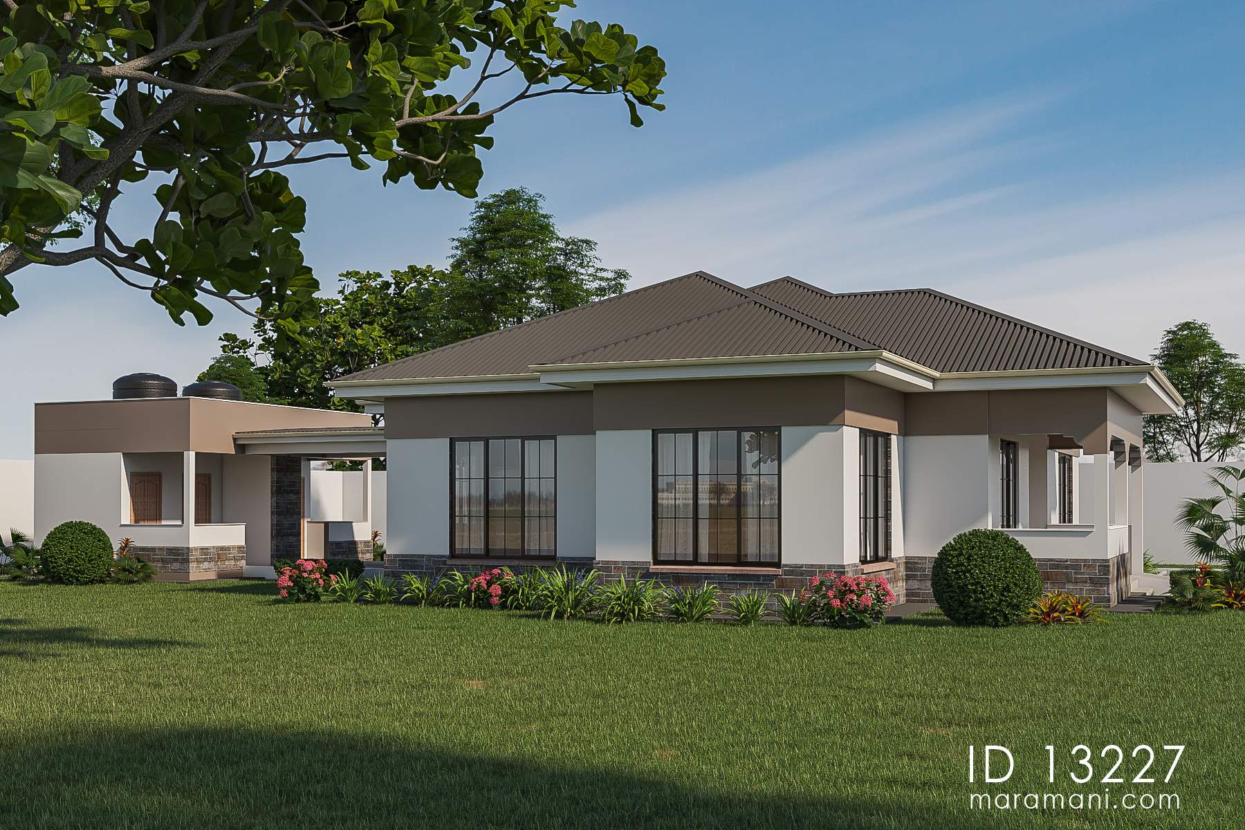 This splendid 3 bedroom house with a simple but elegant exterior is definitely worth the choice to make your home. Through its front verandah, the doors open to a dramatic lobby, where on its right side it leads you to an open living room and dining space with large windows filling the entire space with natural light and warmth. Do you want to keep the ingredients of your finger-licking food a secret? Well, then this plan is ideal for you as it offers a closed kitchen with a kitchen store and a verandah perfect for relaxing and outdoor cooking. On the left side of the plan, it navigates you through a corridor to 3 cozy bedrooms with ample spaces offering more flexibility with floor to ceiling built-in wardrobes. On the rear side, it has two wheelchair-accessible bathrooms and toilets connected to the house with a covered walkway. The bathroom wing has a flat roof with enough space to hold up to 3 water tanks.