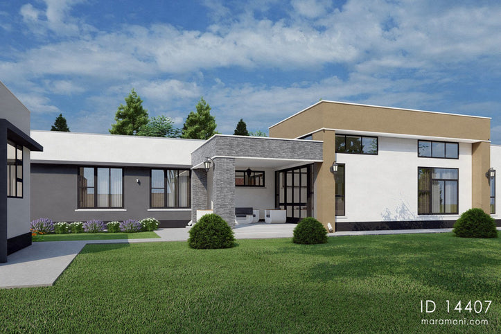 If you are looking for a unique and Comfortable modern house to call your home, take a look at this one-story four bedrooms and 4 baths house. It offers 342 square meters, with a 2 car garage. In this home plan walking through the front door, you find yourself with many options including a media room, Study room, dining, a bar, a kitchen with ample space along with an additional activity area all directly in front of you, and a living room that opens to the alfresco. You'll love the deluxe master bedroom with its walk-in closet, spa tub anchors the private bath, along with a separate shower, and a dual-sink vanity. Don't forget to check other rooms like the pantry, Laundry, and en-suite along with auxiliary bedrooms that are great for kids