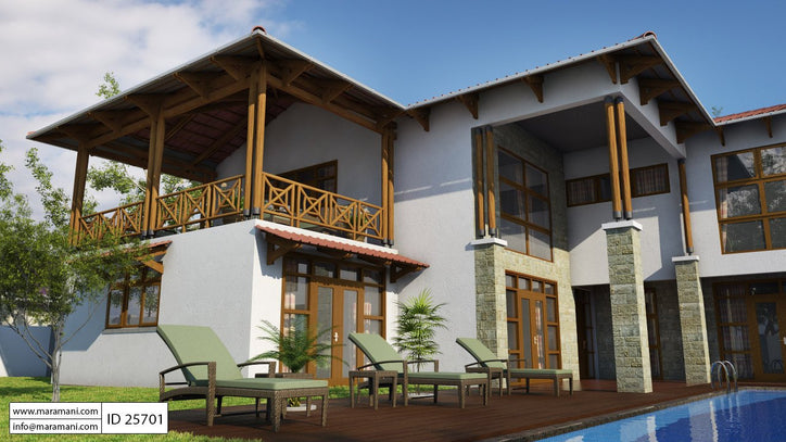 A Bali style house designed for hot tropical climates with covered verandahs and open spaces. Wood is one of the main building materials giving it a natural and elegant look. Large balconies allow hosting of friends and parties while overlooking the garden and/ or swimming pool or just relaxing in the evening.