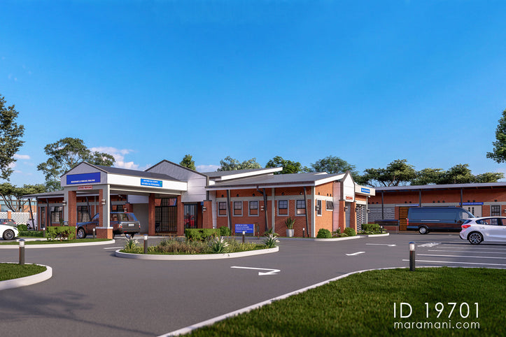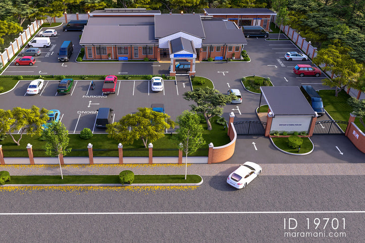 In the heart of the African community, a graceful and culturally rich funeral home design stands tall. It embraces the essence of tradition and modern designs, creating a peaceful space for grieving families. Constructed with burnt bricks and adorned with screen wall facades, this solemn building exudes an air of respect and appreciation. The metal roofing sheets, large windows, and generous roof overhangs provide practical functionality. Additionally, they create a calming ambience that invites solace and comfort all users.