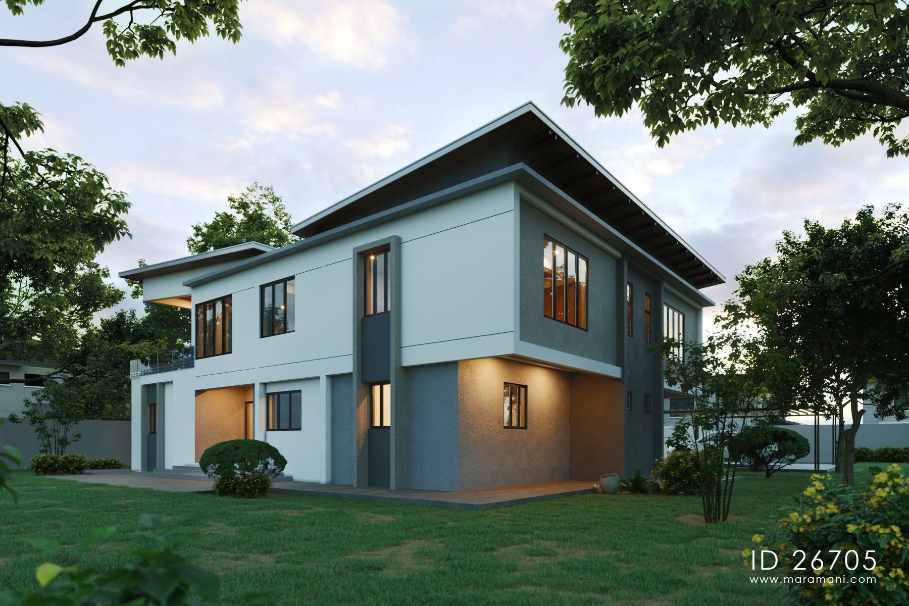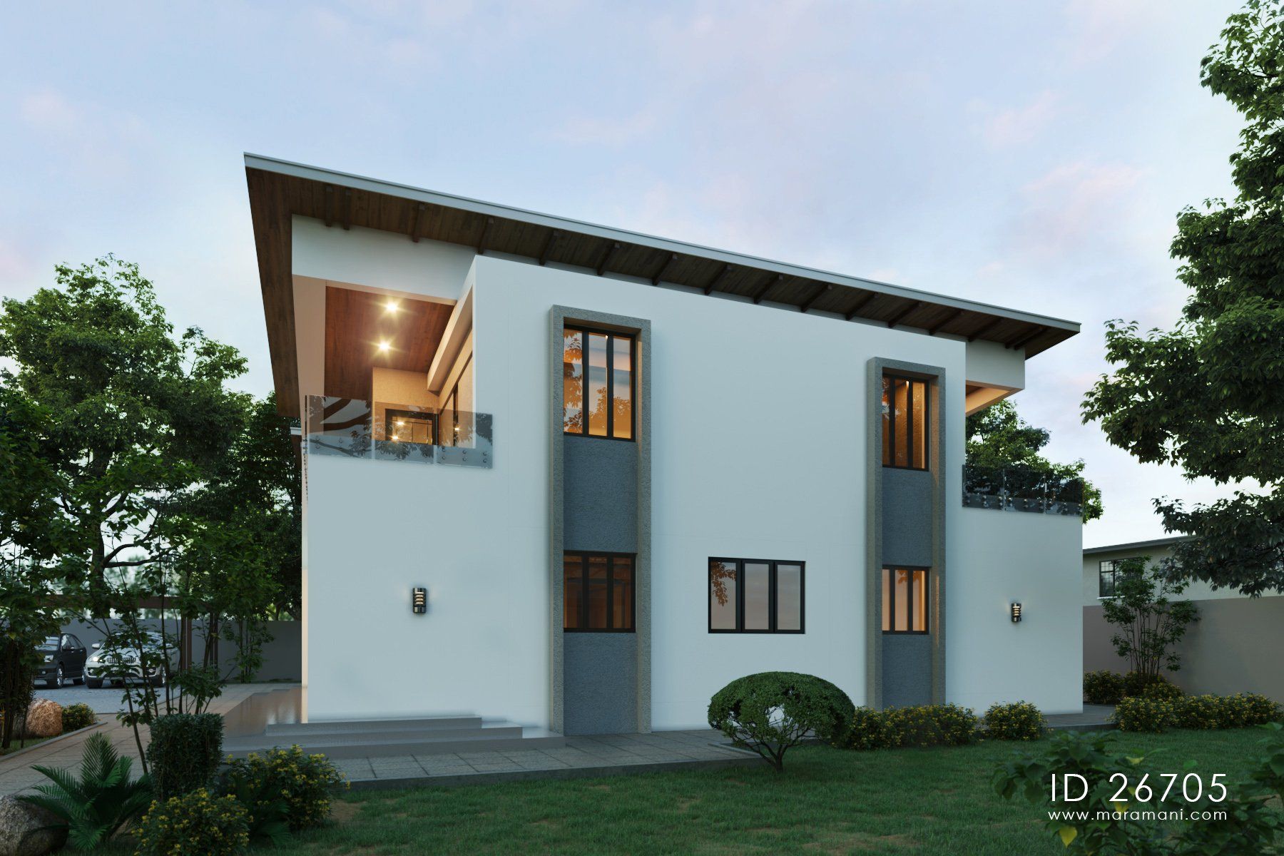 Indian contemporary residential architecture is defined by a complex mix of overhangs, straight lines and overlapping structural elements which form "layers" within the facade of the building. This compact 6 bedroom house plan takes inspiration from Indian contemporary architecture and is designed to fit any tropical setting.