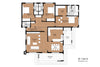 Down a hallway off of the living room, you will find three bedrooms with enough space for a built-in closet and private bath including a unique master suite with a walk-in closet. Overall this design is a great option for the homeowner who wants to keeps the communal living areas separate from the bedroom flow, making it easy to maintain privacy when necessary