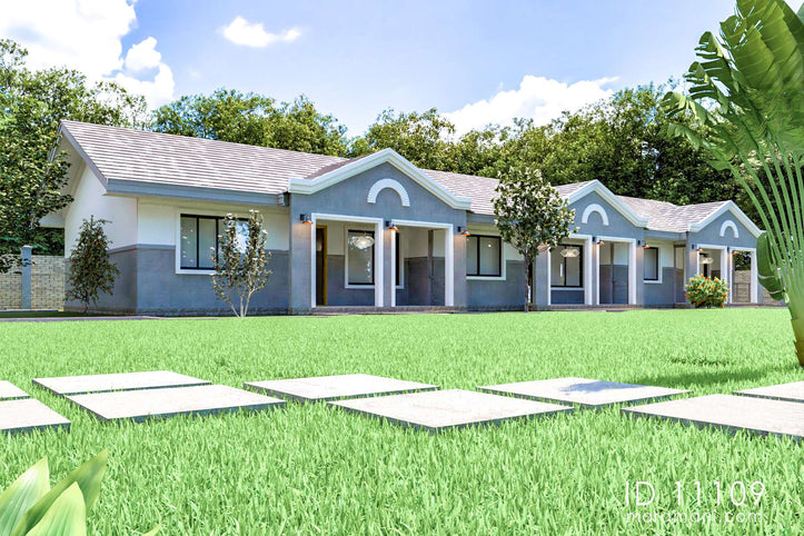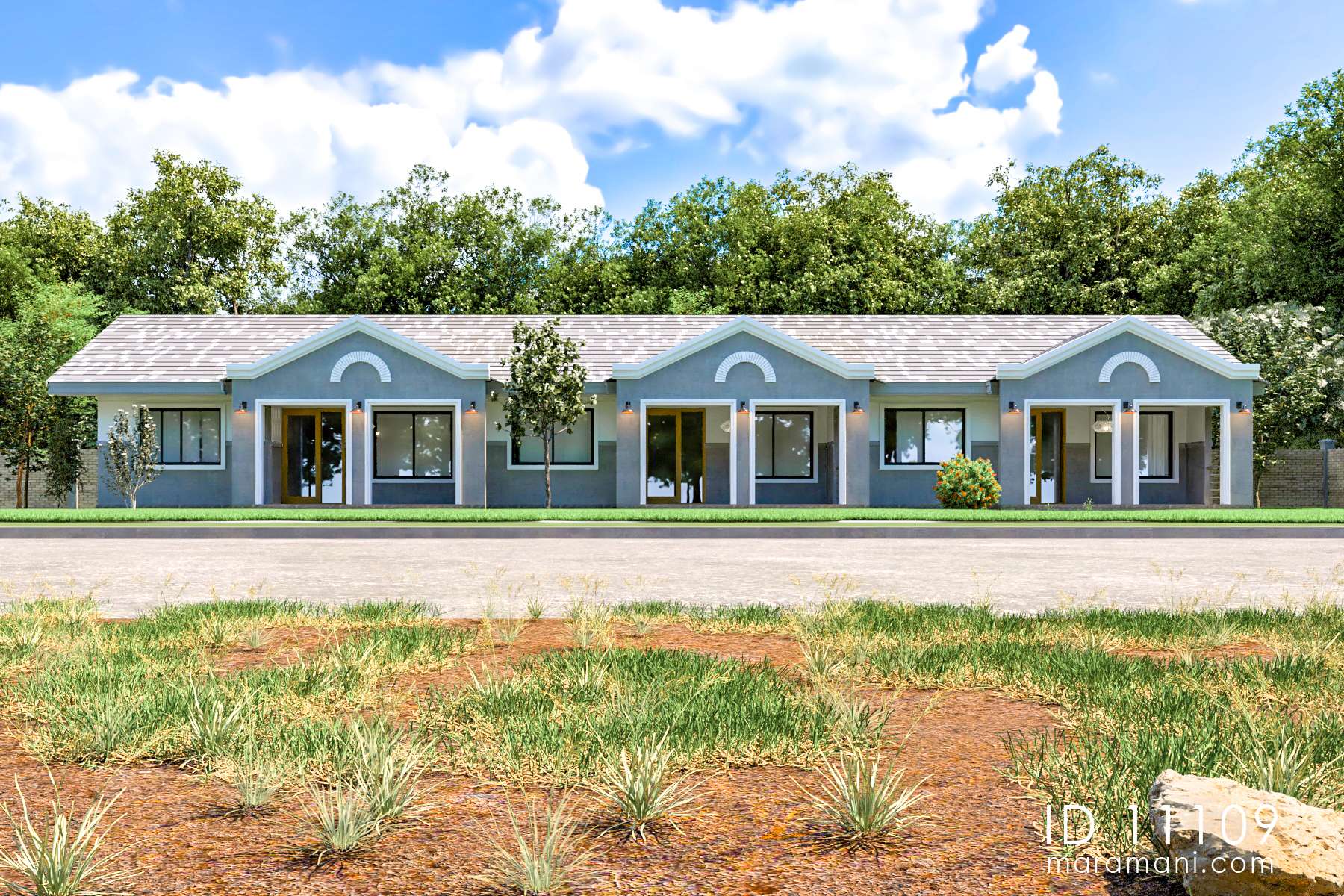 This affordable simple one bedroom row house plan is ideal for real-estate purposes or a short-term rental like Airbnb. Simplicity in the design allows the construction costs to be low while still maintaining a beautiful appearance. The units are designed to be built by interconnecting to each other thus minimizing the space used on a plot while maximizing the number of units you can fit.