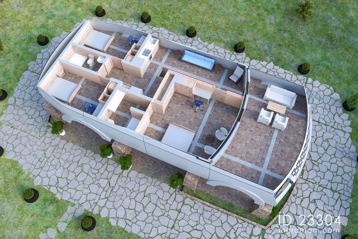 The house is surrounded by a veranda with rock colonades. On entering, you are greeted by a modern open design concept of a living room/dining room/kitchen. The entire space is well lit by natural light and fully ventilated, making it warm, comfortable, and inviting. The dramatic suspended stairs that separate the living room and the kitchen transport you to the first floor, where you will find a family retreat area. When you need some privacy, the family retreat is a great place to relax and entertain your family. There is no need to go to the ground floor because there is a kitchenette for preparing simple meals. There are two bedrooms and one master suite on this floor.